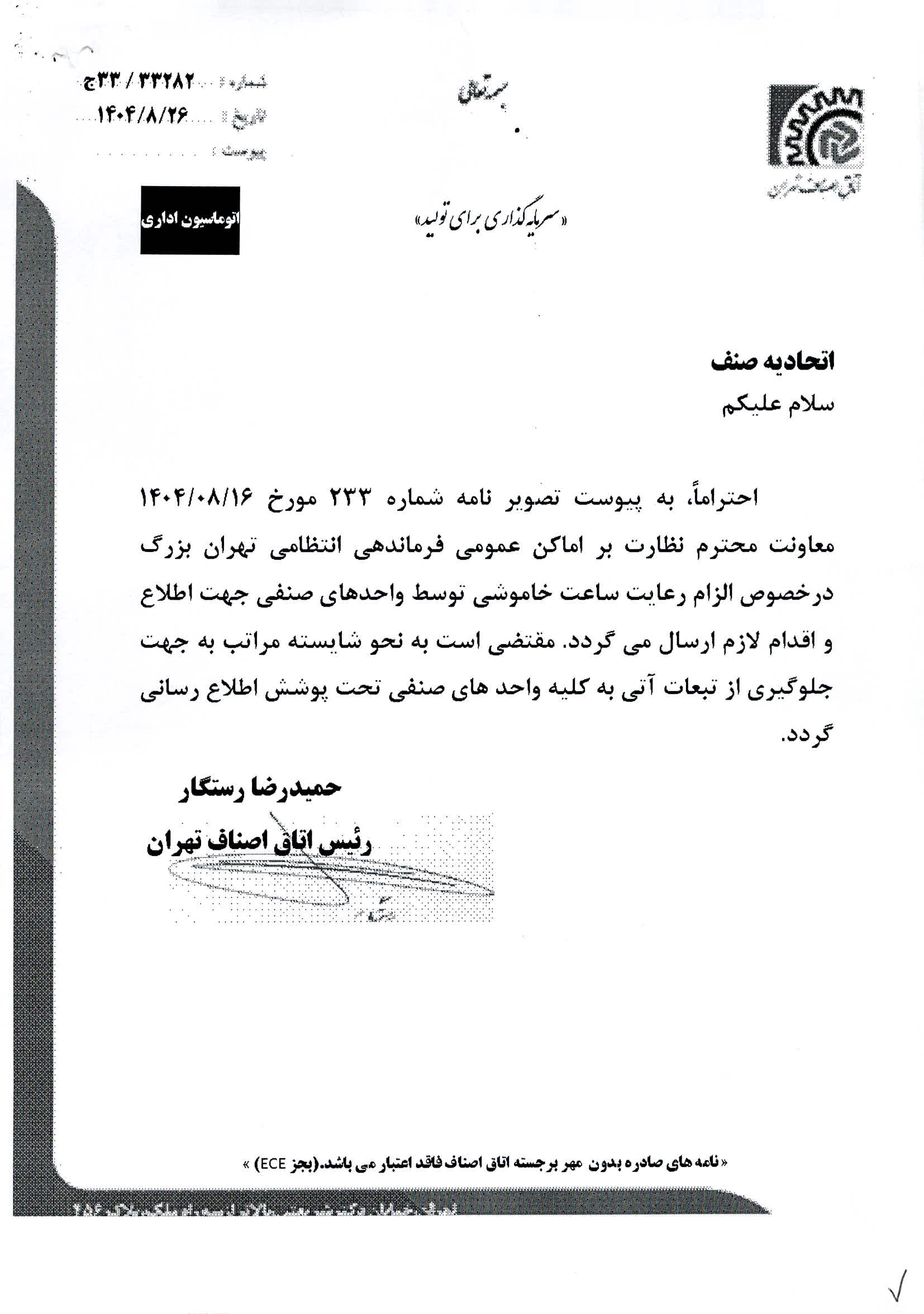 با پیگیری و نامه نگاری های انجام شده توسط اتاق اصناف تهران و سازمان صنعت ، معدن و تجارت استان ۲ رسته مهم سیستم های حفاظتی به رسته های این اتحادیه اضافه گردید.