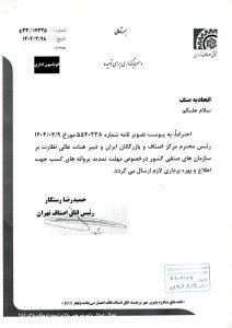 • اطلاعیه در خصوص مهلت تمدید پروانه کسب