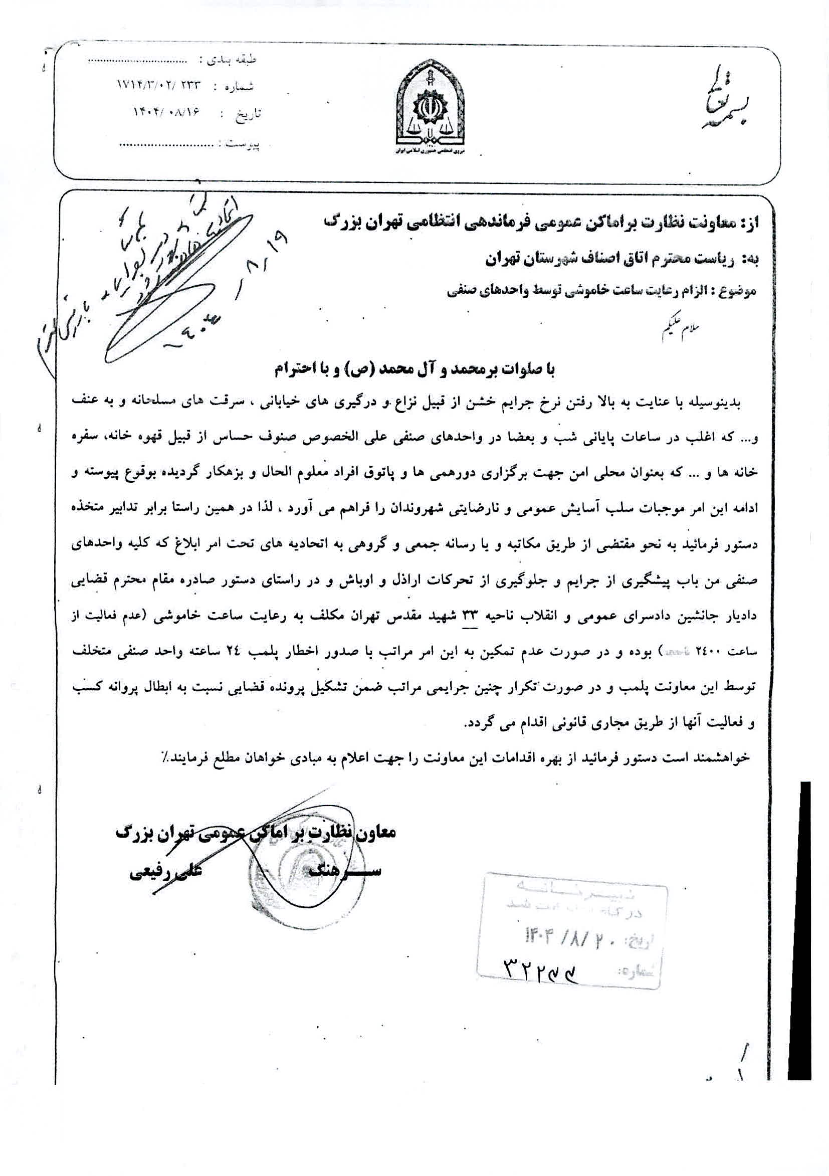 الزام رعایت ساعت خاموشی واحد های صنفی با سلام اطلاعیه در خصوص ساعت کاری واحد های صنفی و اخطار پلمپ ادمین وبسایت۱۴۰۴/۸/۲۷ ۹:۲۸:۳۹1404-08-27|اخبار|بدون ديدگاه مطالب مرتبط هشدار و اطلاعیه جهت مصرف آب Gallery هشدار و اطلاعیه جهت مصرف آب اضافه شدن رسته تولید نصب و تعمیر سیستم های حفاظتی ساختمان Gallery اضافه شدن رسته تولید نصب و تعمیر سیستم های حفاظتی ساختمان اعلام فهرست کالاهای مشمول ثبت Gallery اعلام فهرست کالاهای مشمول ثبت اطلاعیه در خصوص مهلت تمدید پروانه کسب Gallery اطلاعیه در خصوص مهلت تمدید پروانه کسب ثبت ديدگاه لغو پاسخدیدگاه نام ، ایمیل و وب سایت خود را برای بار دیگر که اظهار نظر می کنم در این مرورگر ذخیره کنید. − = 2